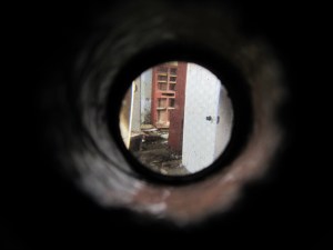 Stereoscopic slide viewed through viewfinder.
